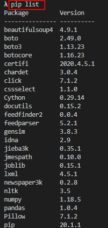 pip list라고 명령어에 치면 다음과 같이 내 로컬 PC에 설치된 파이썬 라이브러리 목록을 확인 가능합니다.