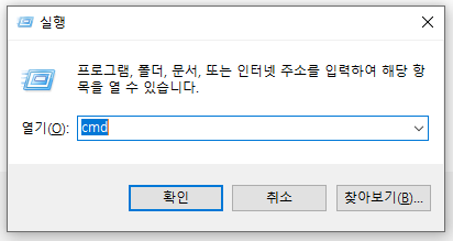Ctrl + r 을 입력하고 cmd라고 치면 명령 프롬프트가 실행됩니다.
