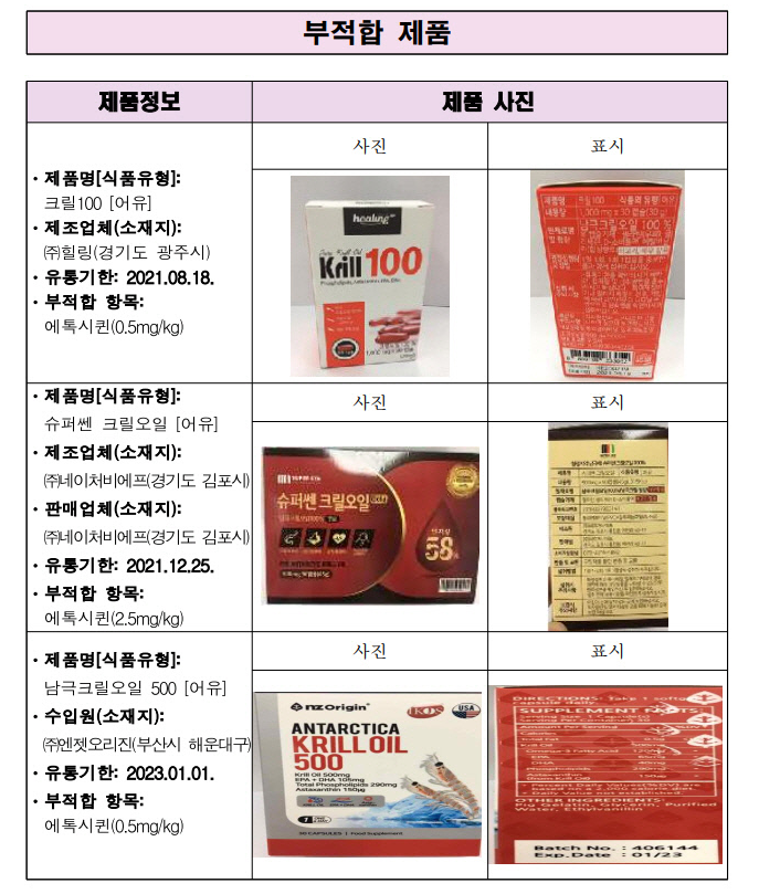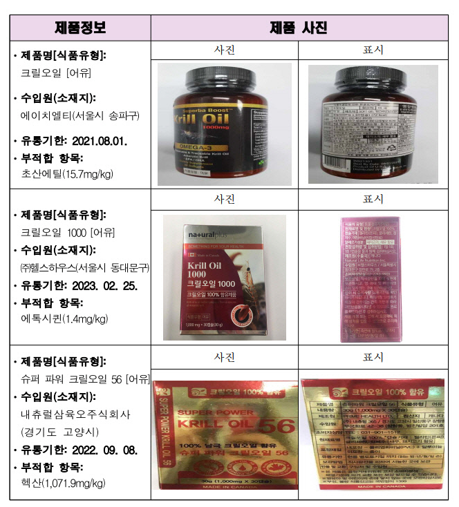 최근 크릴오일에 대한 인기가 높아지면서 크릴오일과 관련된 여러 상품들이 출시되었습니다. 이에 식약처는 홈쇼핑과 인터넷 쇼핑몰에서 판매하고 있는 크릴오일 41개의 제품에 대한 조사를 하였는데요. 충격적이게도 12개의 크릴오일 제품에서 인체에 유해한 화학물질이 기준치를 초과해서 함유되어 있다는 것으로 나타났습니다.