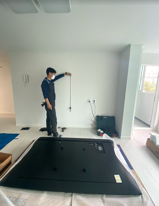 신혼 집을 상상했을 때 제가 가장 기쁘게 생각했던 부분은 TV입니다. 저는 영화관처럼 TV가 크고, 특히 축구를 즐겁게 볼 수 있는 것을 상상해왔습니다. 결론부터 말씀드리면 TV는 큰게 좋습니다. 화질이고 뭐고 큰게 일단 중요합니다. 저희집은 25평이고 거실이 큰 편도 아니지만 75인치가 무리하게 커보이지는 않았습니다. 물론 이 사진은 거대해 보이지만 아이폰 11Pro로 0.5배로 찍은거라 이렇게 착시효과가 날만큼 크게 나왔지만 사실 그렇게 크지는 않습니다. 딱 적당한 크기라고 생각합니다.