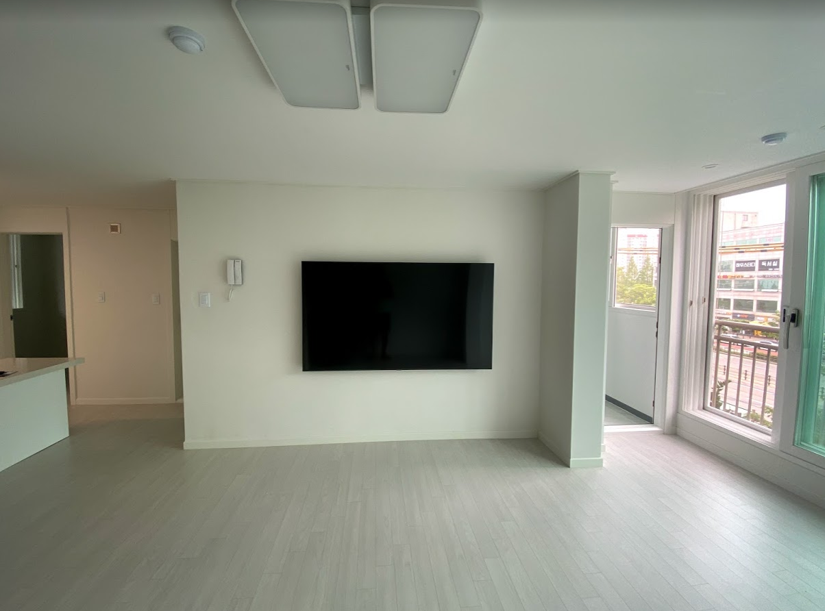 TV를 벽걸이로 하나, TV장을 사서 스탠드로 사나 그걸 고민하시는 분들도 계실겁니다. 벽걸이의 단점은 전세의 경우 벽을 뚫는 것이 부담되고, 또 이사갈 때 이거 처리하는게 힘들어서 스탠드로 가시는 분들도 많습니다. 이 부분을 고려하시면 좋을 것 같습니다. 전세라면 스탠드, 자가라면 벽걸이를 추천드립니다. 벽걸이로 할 수 있다면 벽걸이로 하시면 정말 깔끔합니다. TV의 위치와 높이는 이정도가 딱 소파에서 보기 좋은 정도 인 것 같습니다.