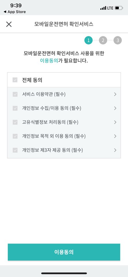 모바일 운전면허 확인서비스 동의를 체크합니다.