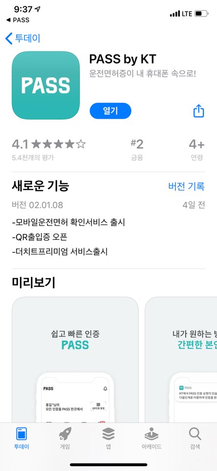 1. PASS 앱 다운