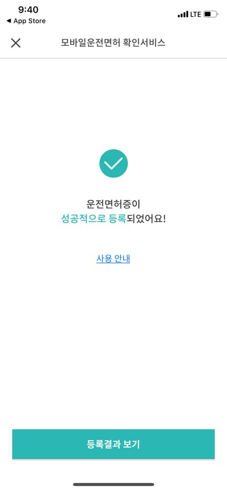 아래와 같은 메시지가 출력되면 운전면허증 등록에 성공한 것입니다.