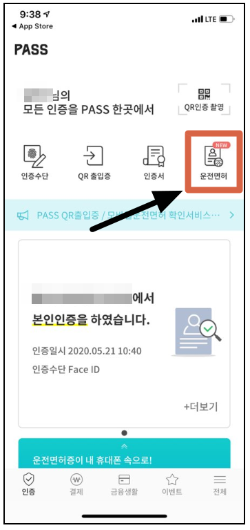 운전면허 메뉴를 선택합니다.