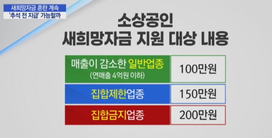 추석 전 지급 대상자에게는 23일 오후부터 문자메시지로 안내하고 24일부터 신청을 받아 25일부터 지급이 가능하도록 할 예정이다. 안내에 따라 신청한 소상공인에게는 본인 명의 계좌로 최소 100만원씩의 새희망자금이 지급됩니다.
