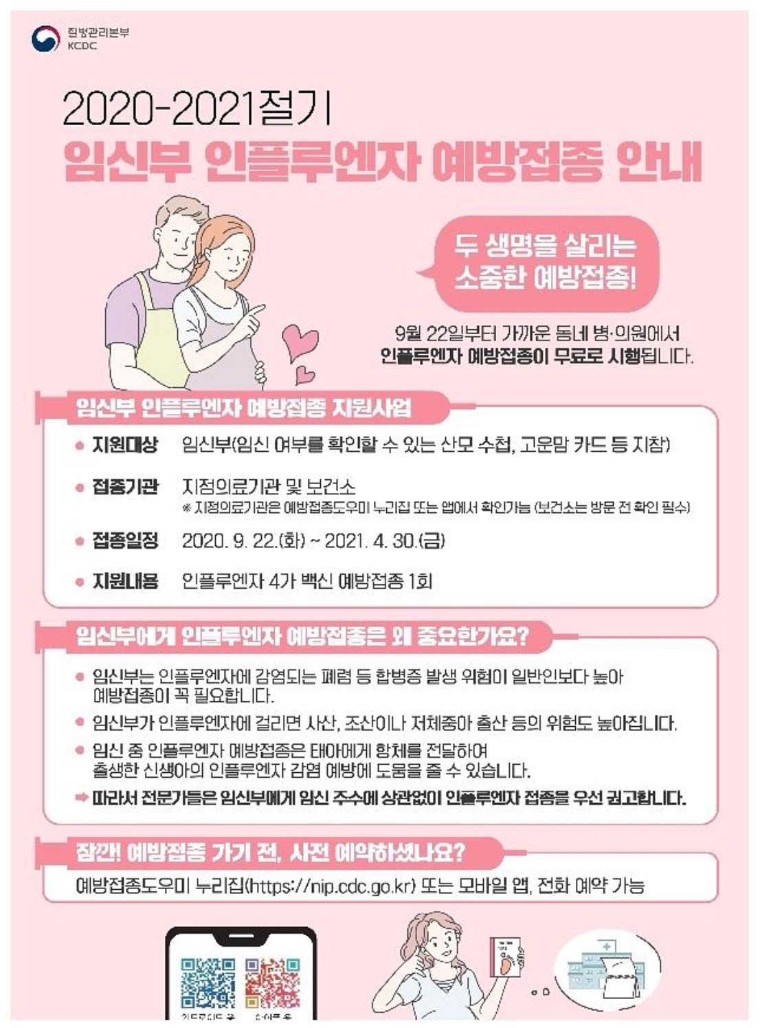 임신부의 예방접종 기간은 2020년 9월 22일부터 2021년 4월 30일까지 입니다.