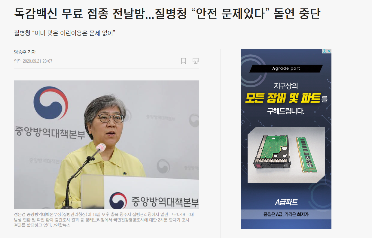 Q4 독감 백신이 현재 (2020.09.22) 중단되었는데 무슨 문제인가요?