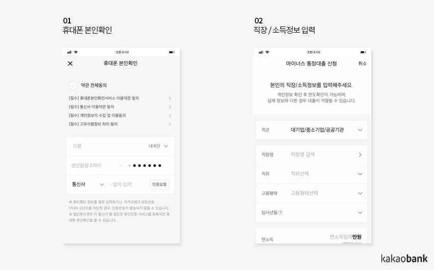 - 서류는 별도의 준비 없이 공인인증서 인증 절차만 거치면 자동적으로 카카오뱅크에 제출됨