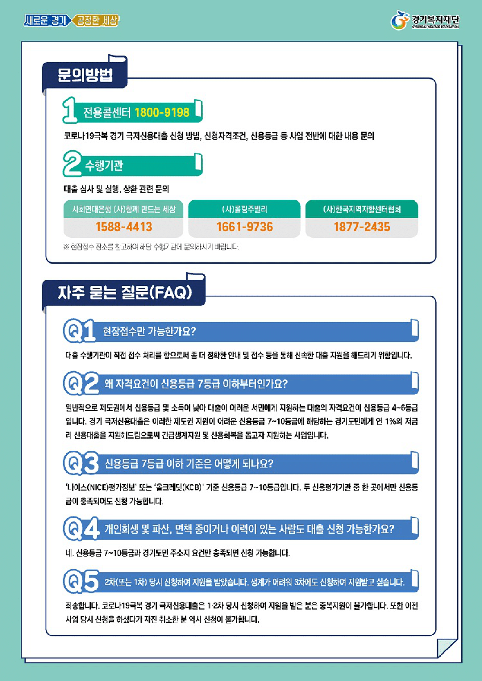 | 경기 극저신용대출 전용콜센터 | 1800-9198 |