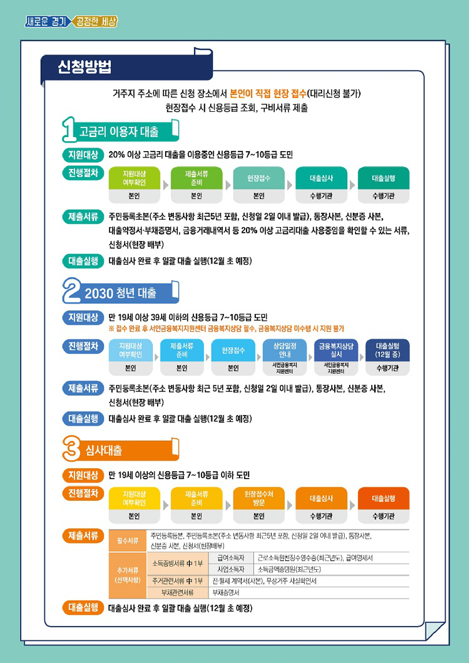 - 온라인신청 : 경기복지플랫폼 (ggs-loan.ggwf.or.kr)