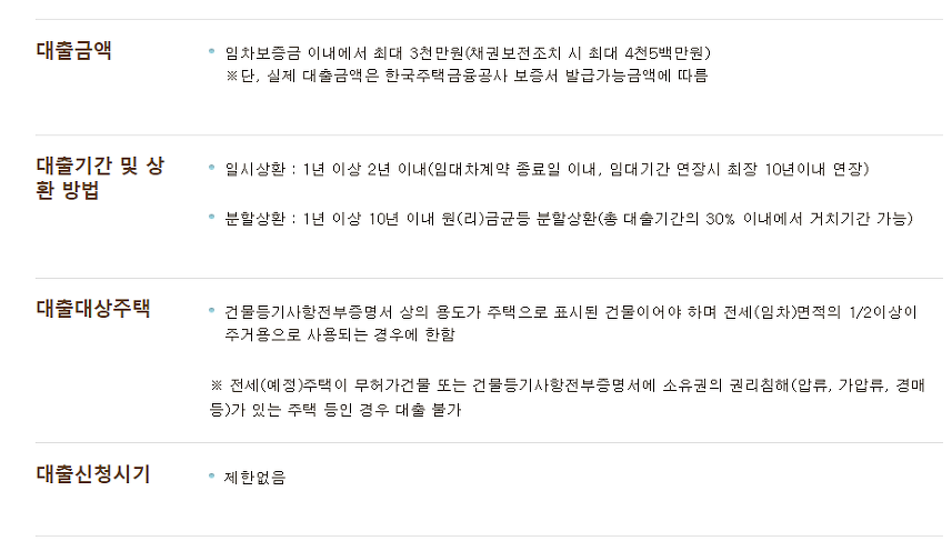 • 대출기간 : 2년(4회 연장하여 최장 10년 가능)