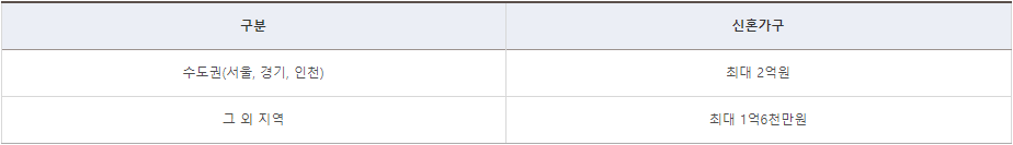 • 대출 신청인과 배우자의 연소득 합산 60백만원 이하, 순자산가액이 2.80억원 이하인 자