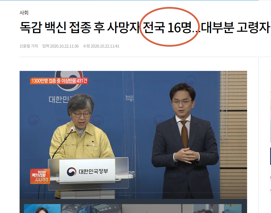 독감 백신을 맞은 뒤 사망한 사람들이 계속 나오고 있죠?