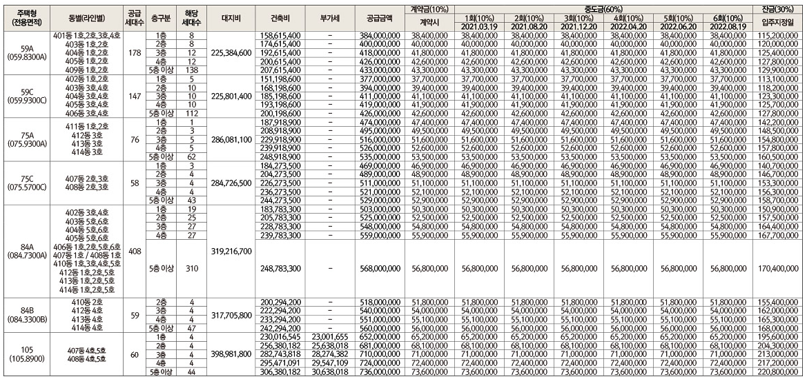 | 입주시기 | 2022년 12월 예정(정확한 입주일자는 추후 통보) |