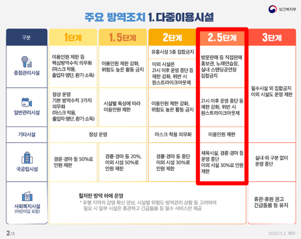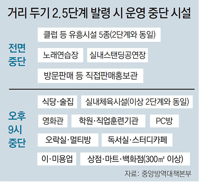 2.5단계 시행 시 중단되는 시설들