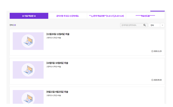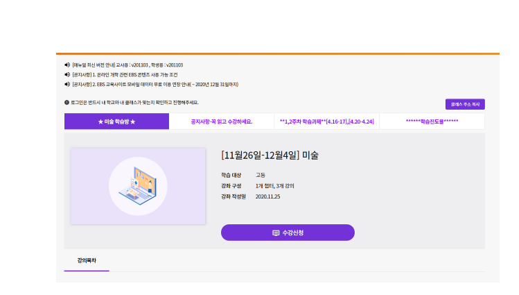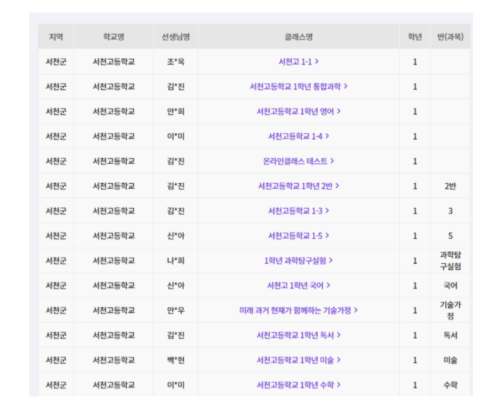 3. 지역, 학교명, 선생님명, 크래스명, 학년, 반 등을 보고 수강을 희망하는 과목명을 클릭한다.