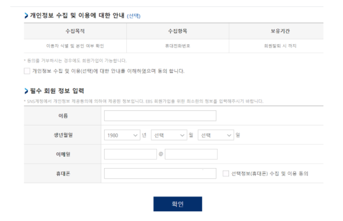 위의 온라인 클래스를 신청하기 위해서는 먼저 EBS 아이디 및 비밀번호가 필요합니다. 아래에는 간단하게 EBS 회원 가입하는 방법을 알려드리겠습니다.