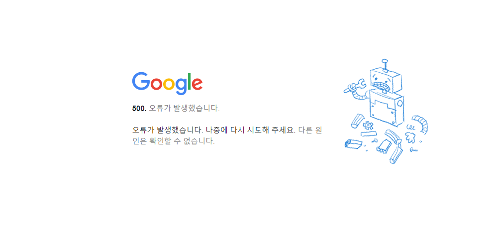 현재 구글을 비롯한 유튜브 서버가 오류가 생겼습니다.