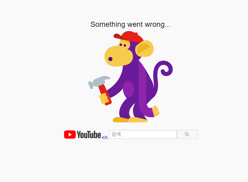 현재 유튜브에 접속하면 Something wet wrong이라는 문구와 함께 원숭이 그림만 나옵니다.