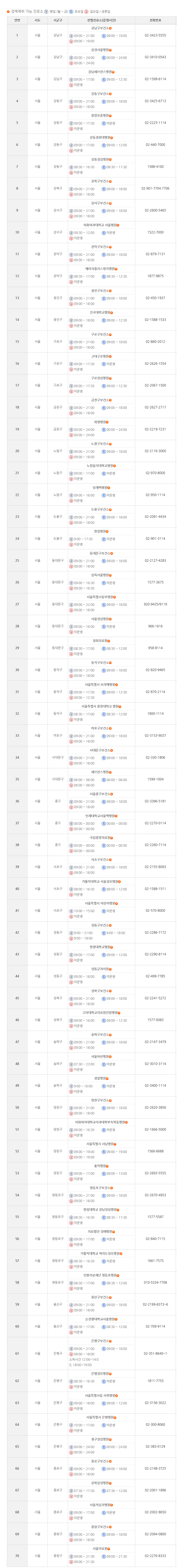 - 보건소선별진료소 - 평일 21시까지, 주말 18시까지