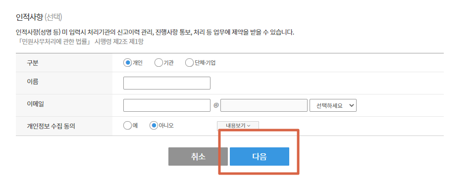 6. 인적사항을 적고 [다음] 버튼을 누릅니다.