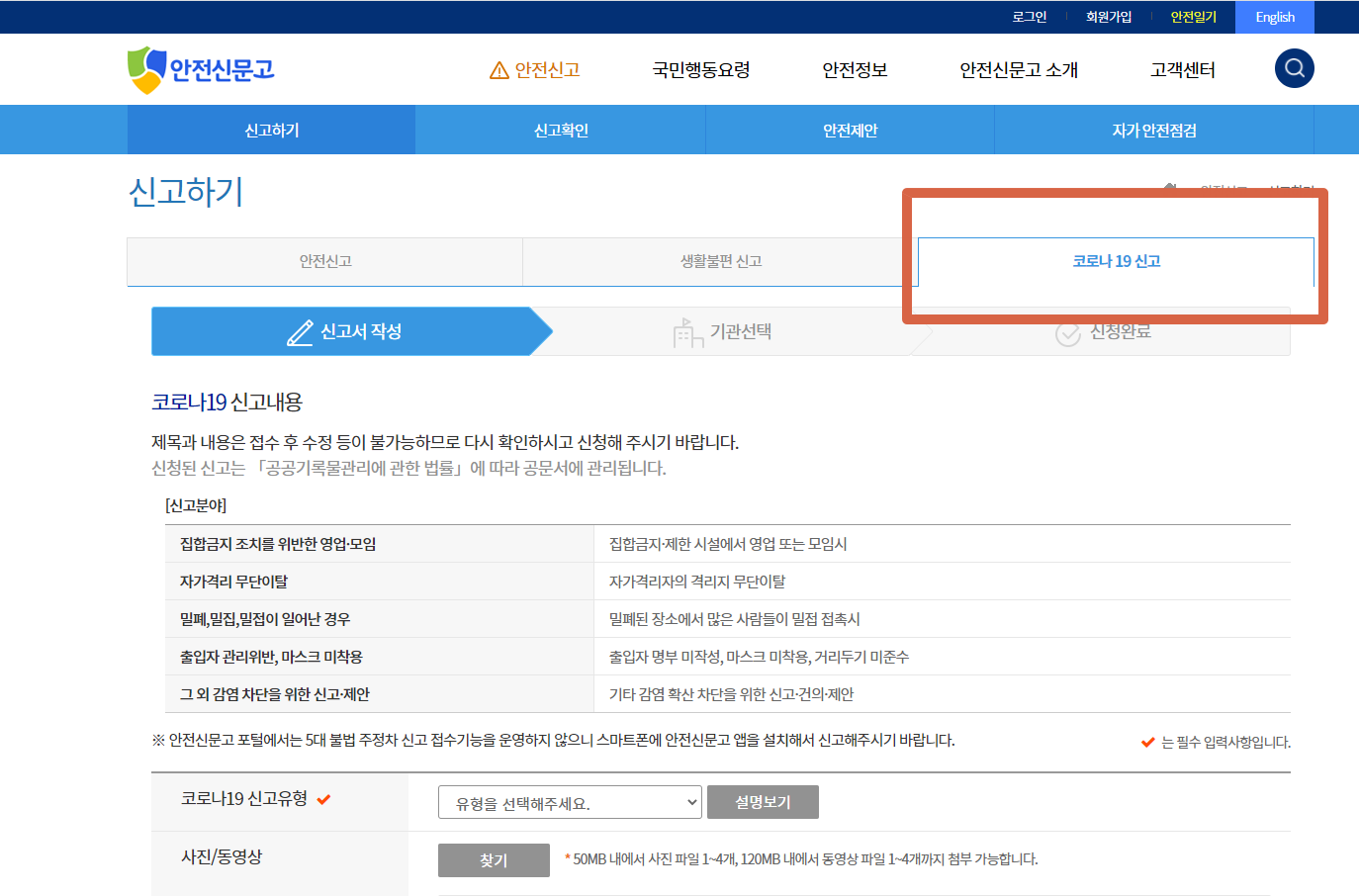 3. 코로나19 신고 선택