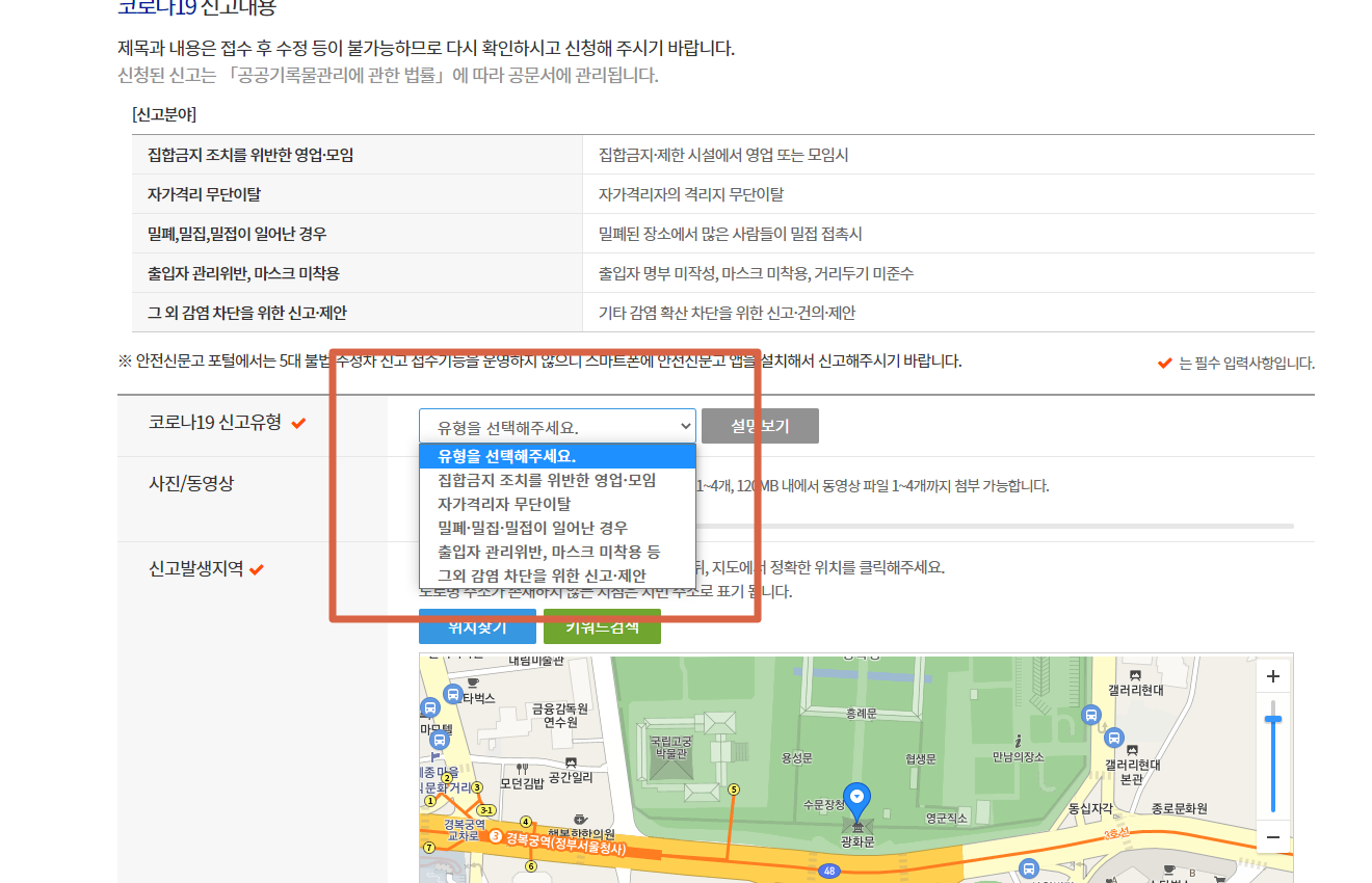 행정안전부에서 만든 안전신문고 어플에서는 코로나 방역수칙에 위반사례 발견 시 신고가 가능합니다.