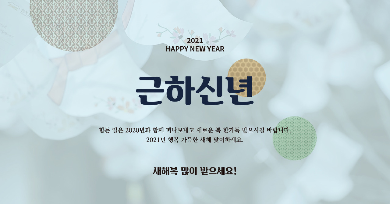 올해는 코로나19로 인해 직접 얼굴을 뵐 수는 없지만, 이렇게나마 2021년 인사를 대신합니다. 신축년 새해 복 많이 받으세요.
