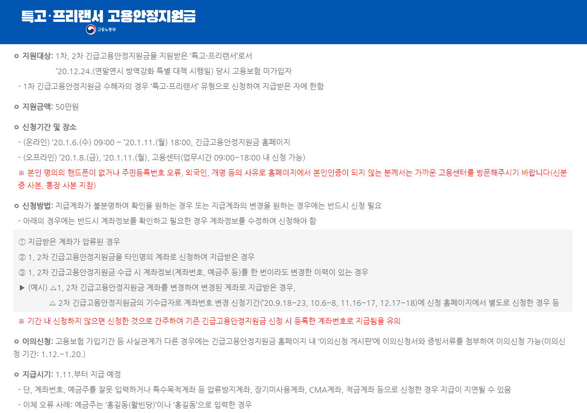 하지만 새롭게 지원금을 받고자 하시는 분들은 3차 긴급고용안정지원금을 신규로 신청하셔야 합니다.
