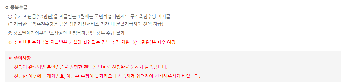 ※ 다만, 연말연시 방역강화 특별대책이 시행된 지난해 12월 24일 당시 고용보험에 가입된 경우에는 지원대상에서 제외됩니다.
