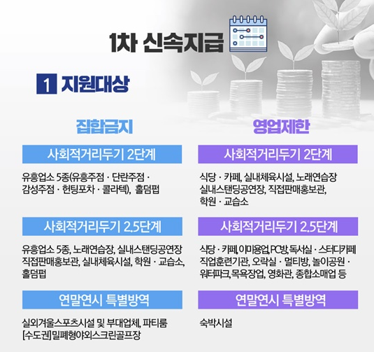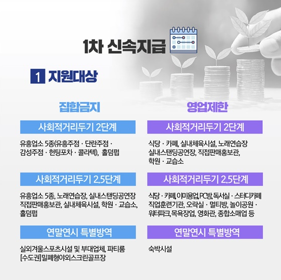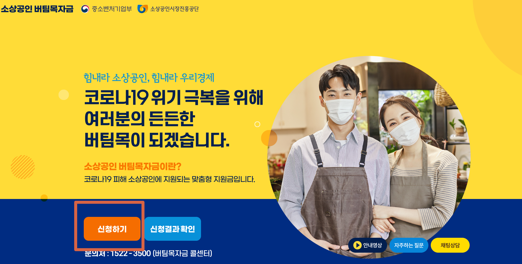 사회적 거리두기 강화로 집합금지, 영업제한과 매출감소를 겪고있는 소상공인에게 버팀목 자금을 지급합니다.