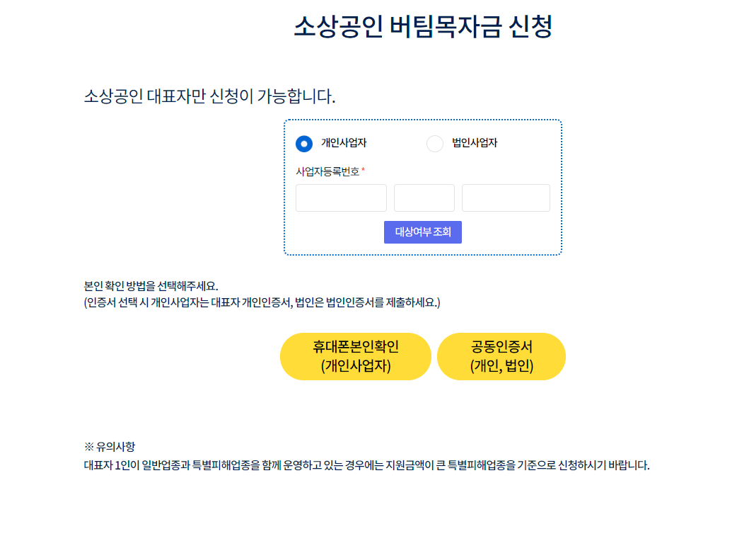 - 1인 1사업체: 여러 사업체를 운영하는 경우 1개 사업체만 지금