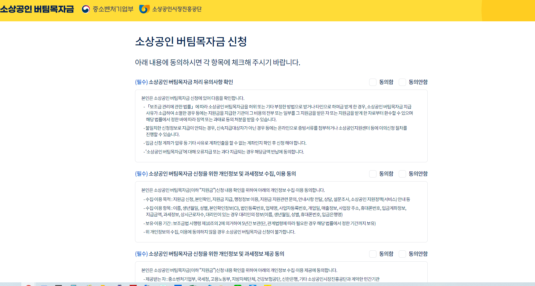 - 신청자가 정보 제공에 동의하고, 사업자등록번호를 입력해 대상자 여부를 조회합니다.