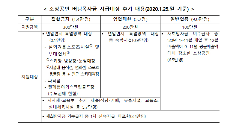 - 새희망자금을 받았지만 버팀목자금 1차 지급대상에는 포함되지 않았던 소상공인 (2만 4000명)