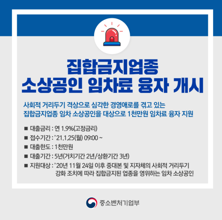 코로나19의 3차 대유행에 따라 정부에서는 집합금지업종들을 선정하여, 영업을 금지시켰는데요. 이에 어려움을 겪고있는 소상공인들에게 정부에서 저금리의 대출상품을 출시했다고 합니다.