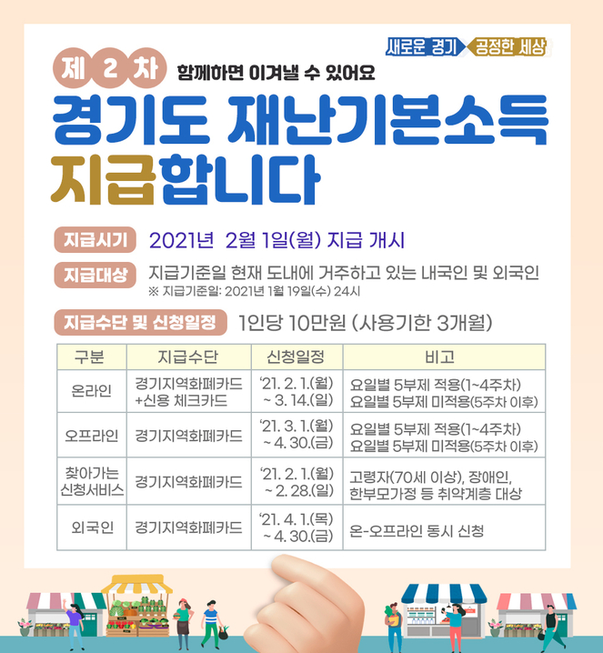 | 외국인 | 경기지역화폐카드 | 4월 1일 ~ 4월 30일 | 온-오프라인 동시신청 |