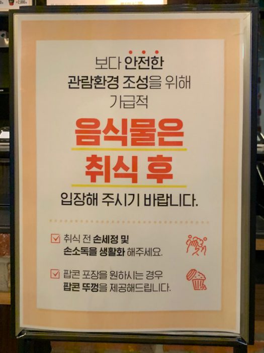 상영관 내 물, 무알콜 음료 외 음식물 취식 금지 조치는 유지됩니다.