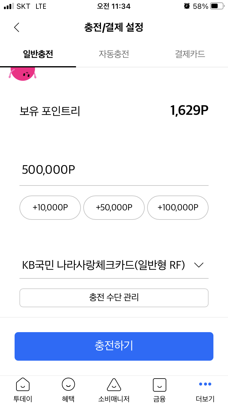 최고혜택 구간은 100만원이니 다음날 더 충전하셔도 됩니다.