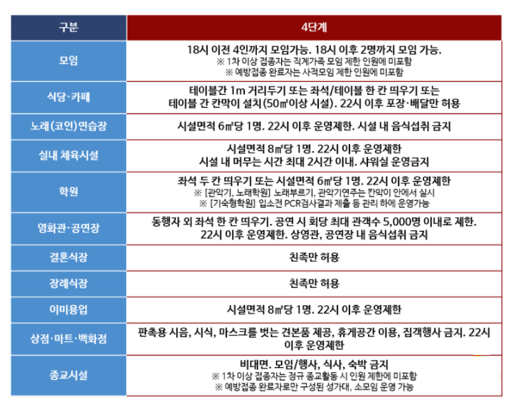사회적 거리두기 4단계 바뀌는 점