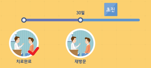 치료가 종료된후 30일이 지나면 같은 질병으로 같은 병원을 찾더라도 초진으로 처리된다.