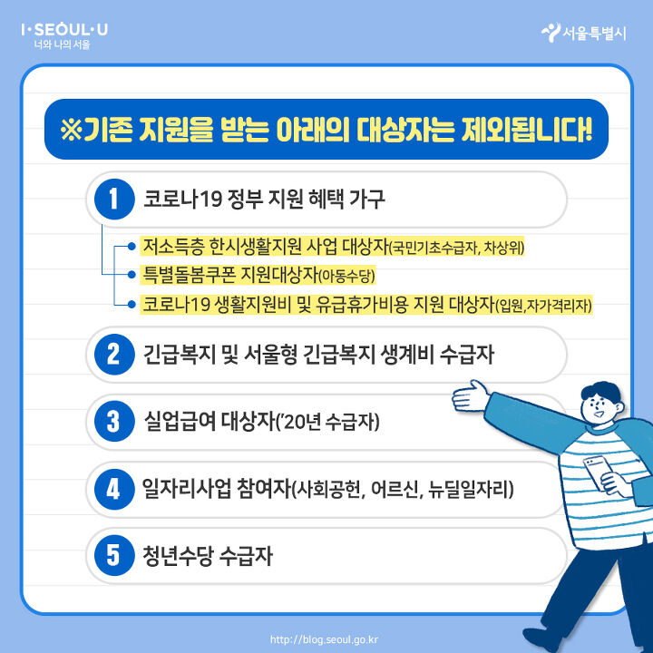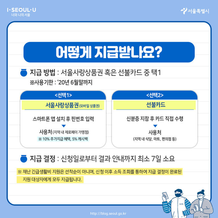 서울시는 코로나19로 직접 타격을 입은 시민들의 고통을 실질적으로 보듬고, 지역 경제 활성화를 위해 ‘서울시 재난 긴급생활비'를 지원합니다.