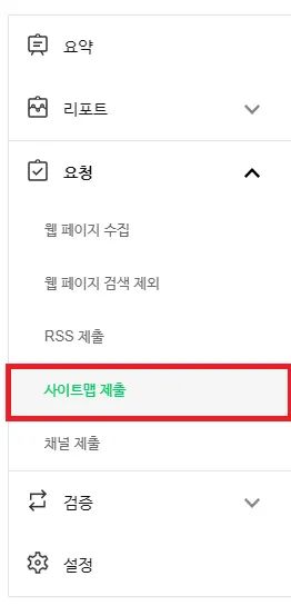 사이트맵을 제출하기 위해 네이버 서치 어드바이저에서 위해 '요청' 탭에서 '사이트맵 제출' 버튼을 클릭해주세요.