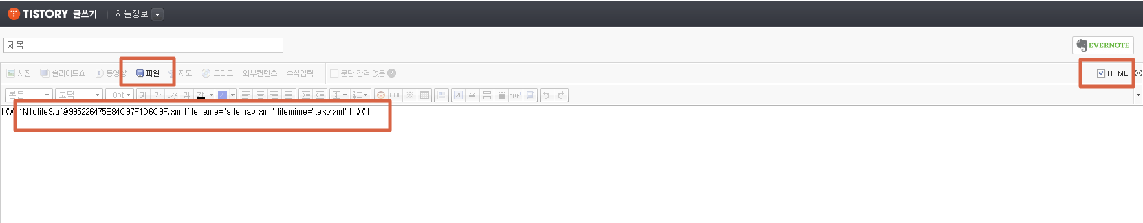 2.4 [1]에서 다운받은 sitemap 파일을 첨부 후 오른쪽 상단에 [HTML 체크박스] 체크