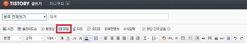 2. 다운로드 한 파일을 티스토리 [서식 작성] 란에서 파일 첨부합니다.