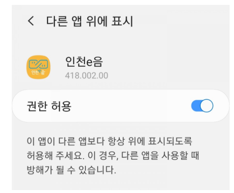 카드를 선택하고 배송주소 입력을 누르면 다른 앱 위에 표시가 뜨는데 권한 허용을 해줘야 합니다.