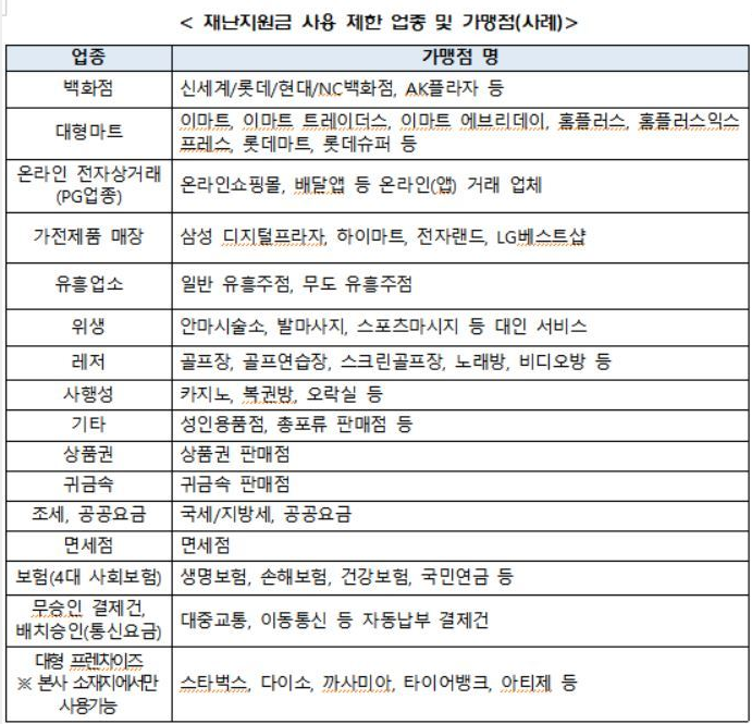 Q7 긴급재난지원금을 사용할 수 없는 업종은 무엇이고 어떤 가맹점이 있나요?