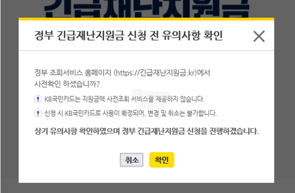 재난지원금을 신청할 카드사 홈페이지로 이동합니다.