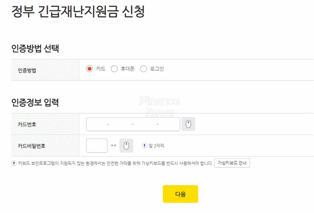 재난지원금을 신청할 카드사 홈페이지로 이동합니다.