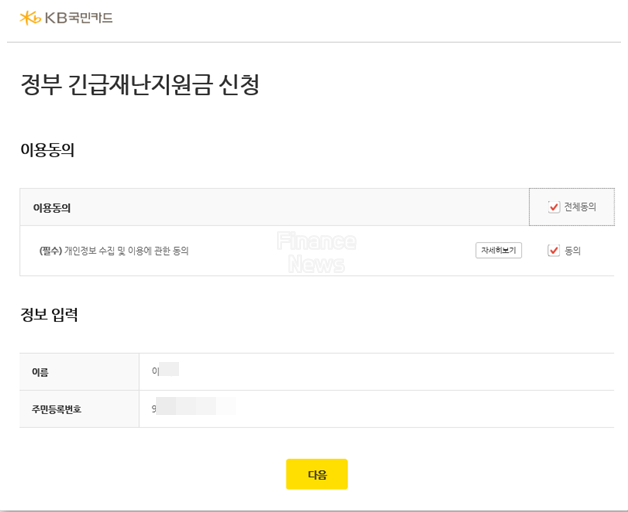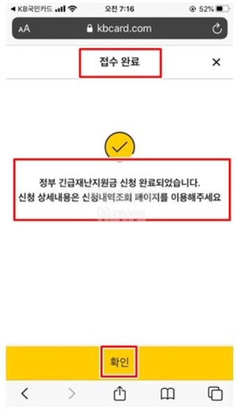 이용중인 카드사 어플을 통해 신청할 수도 있습니다. 마찬가지로 세대주 본인인증이 필요하니 참고하시기 바랍니다.